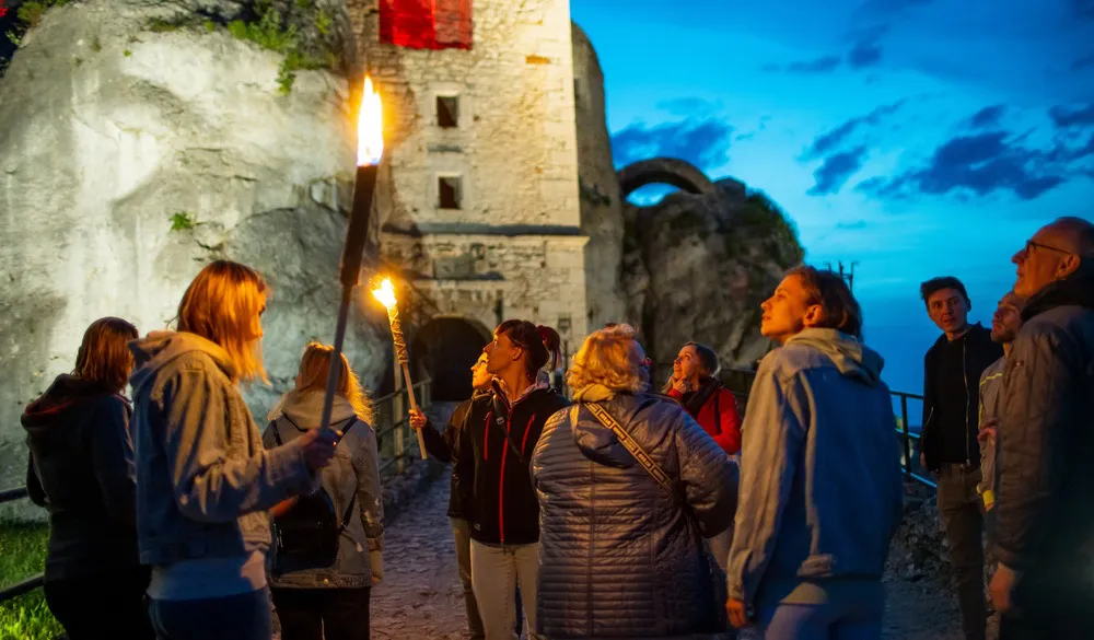 Zamek Ogrodzieniec w Podzamczu, wzniesiony za czasów króla Kazimierza Wielkiego na najwyższym wzniesieniu Jury Krakowsko-Częstochowskiej, to największy i najpopularniejszy ze wszystkich zamków na Szlaku Orlich Gniazd.