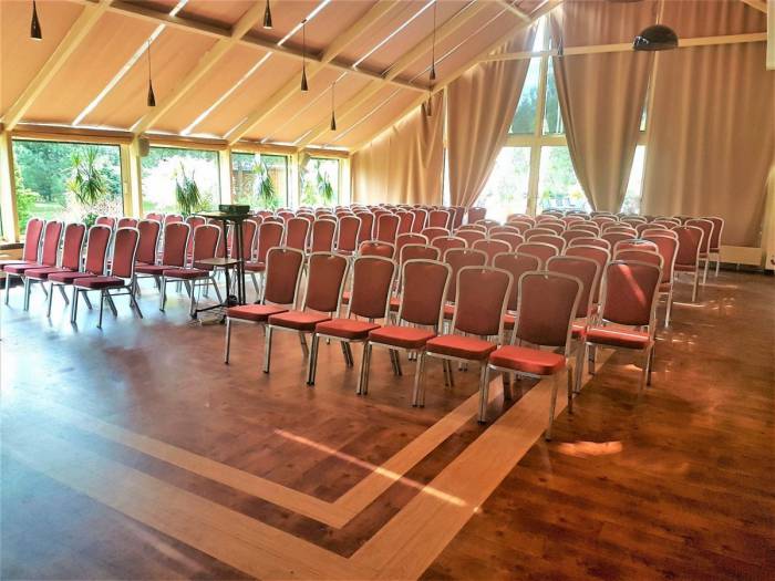 Sala Plenerowa Okiennik – nowa, wielofunkcyjna, przeszklona przestrzeń o powierzchni ponad 700 m², doskonała do organizacji dużych eventów, pikników, wesel, uroczystości oraz imprez integracyjnych.