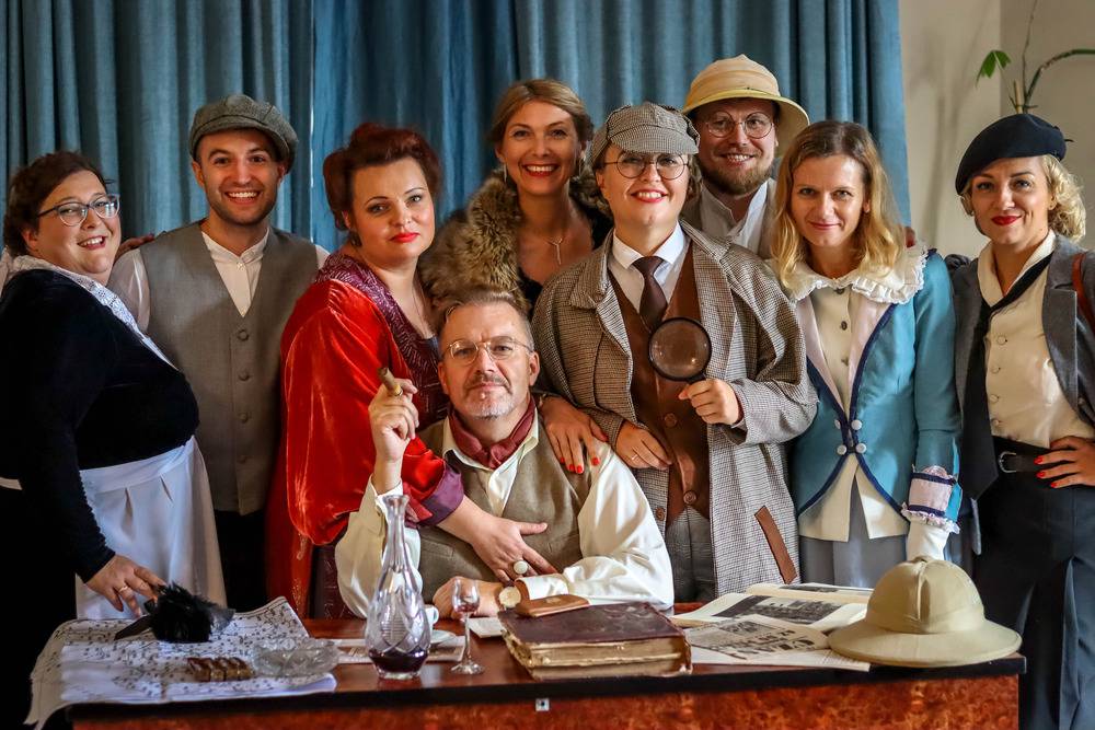 MURDER MYSTERY GAME – Na czas gry zamienicie się w zespoły śledczych na tropie rozwiązania intrygującej zagadki tajemniczego morderstwa. Wyposażeni w akta sprawy zapoznacie się z zabezpieczonymi dowodami z miejsca zdarzenia, przestudiujecie wskazówki i dokumenty, a następnie przesłuchacie świadków i podejrzanych, w których wcielą się nasi aktorzy. Gra może być osadzona w latach międzywojennych, epoce PRL-u lub współczesności.