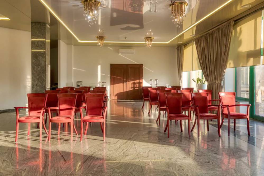 Hotel dysponuje klimatyzowaną salą konferencyjną, przystosowaną do organizacji wszelkiego rodzaju konferencji, seminariów, szkoleń i innych spotkań biznesowych.