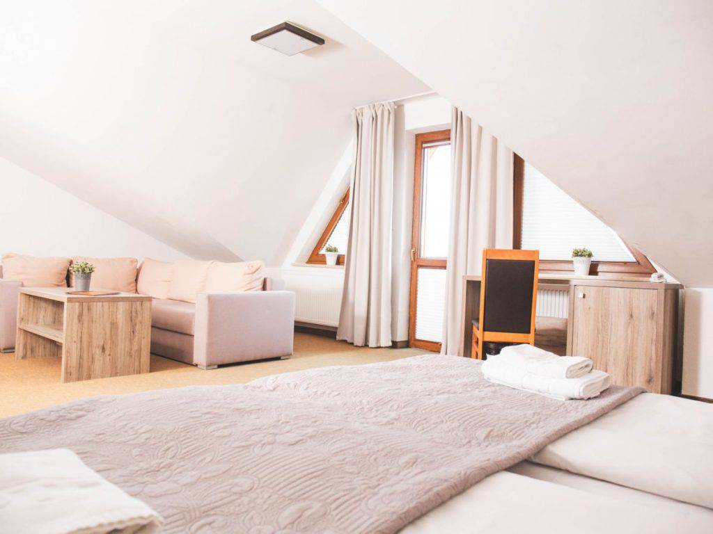 Do dyspozycji Gości, oddano 130 wygodnych i przytulnych miejsc noclegowych. Funkcjonalne i eleganckie wnętrza zostały wyposażone w wygodne meble, nowoczesne łazienki, telewizory, lodówki, a także dostęp do Wi-Fi oraz balkony, z których rozpościera się widok na piękny krajobraz Beskidu Żywieckiego.