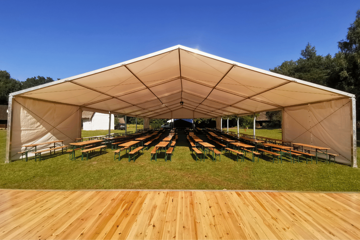 Wynajem hal namiotowych, namiotów imprezowych, sprzętu plenerowego, wyposażenie sal na wesela i komunie, wynajem mebli eventowych.