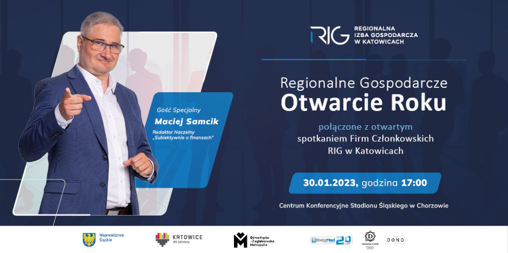 Regionalna Izba Gospodarcza zaprasza na Regionalne Gospodarcze Otwarcie Roku połączone z Otwartym Spotkaniem Firm Członkowskich RIG w Katowicach. Zachęcamy do rejestracji. Udział w wydarzeniu jest bezpłatny.